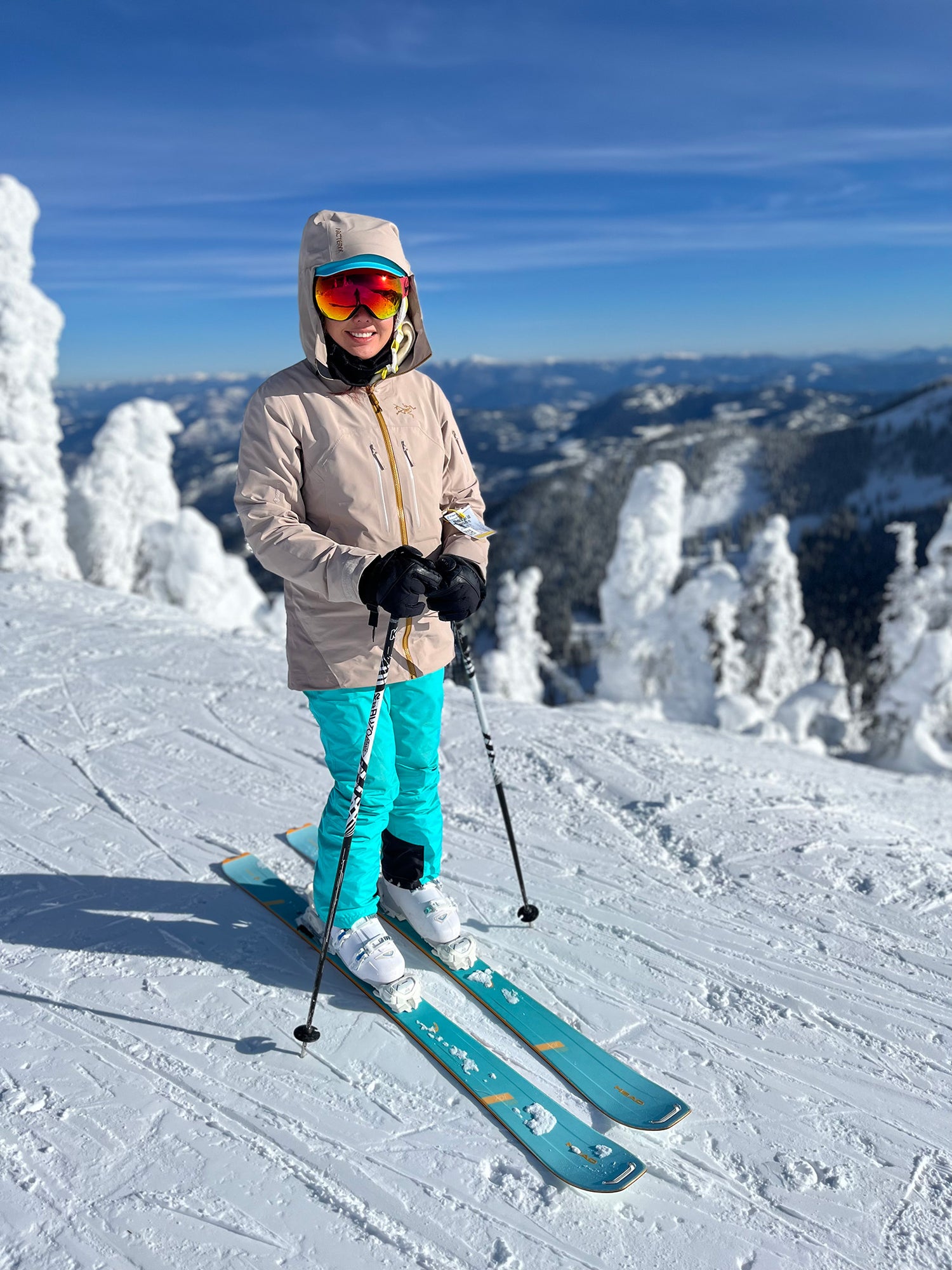 Now in my 40s, I still consider myself an intermediate skier. Give me a smooth, groomed blue run, and I’m in my happy place, zooming down without a care. That said, I usually end up chasing Jarvis into powder and moguls (though I draw the line at weaving through the trees).